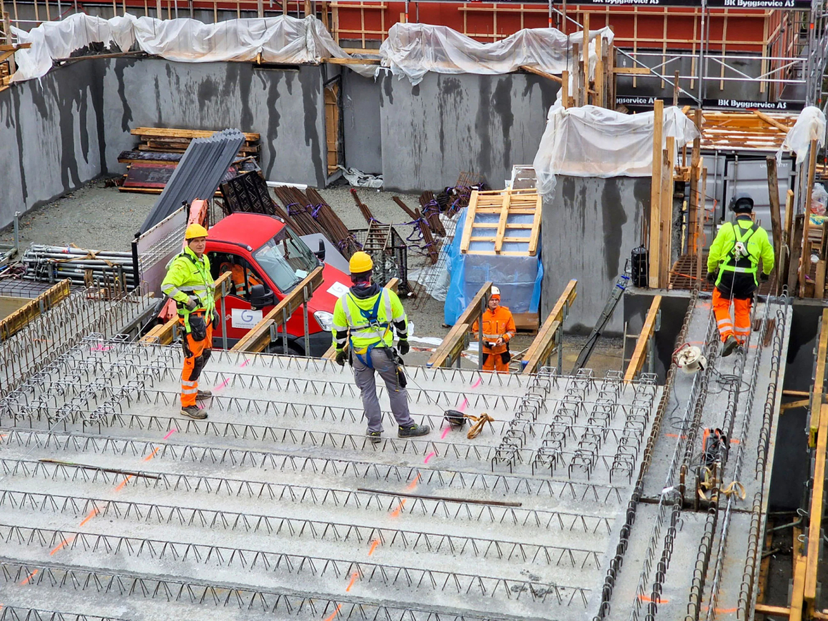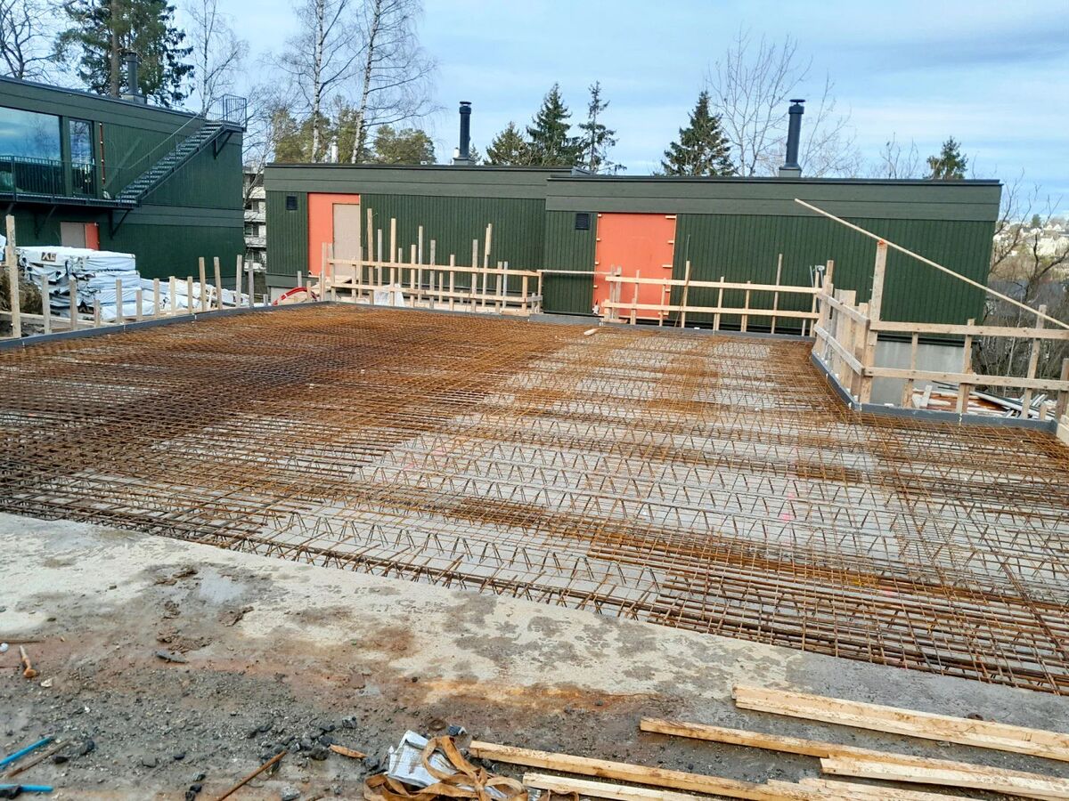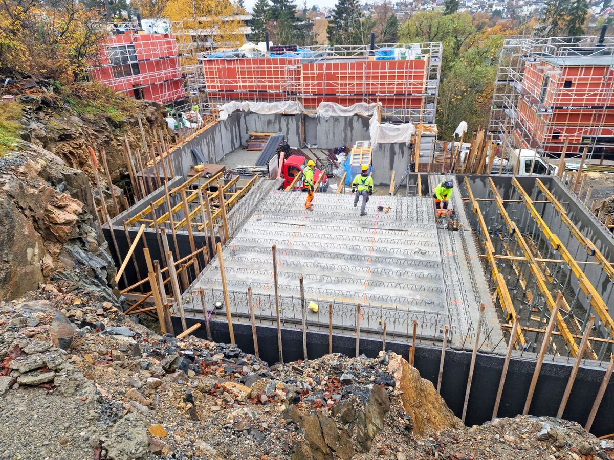 Bildene er fra prosjekt Fugleliveien 11-13, Oslo. Dekkene fra Holtet er benyttet på en felles parkeringskjeller, med 3 stk. 2m boliger og 1 stk. enebolig rundt og oppe på garasjen.